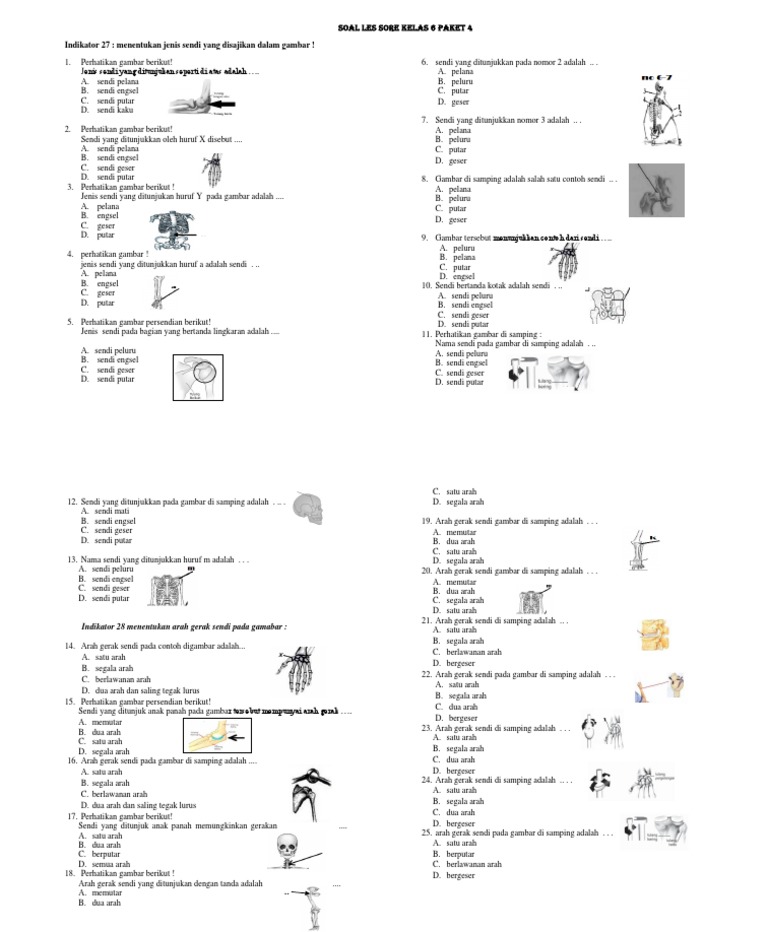 Soal Les Sore Kelas 6 Paket 4 Sendi Dan Arah Sendi